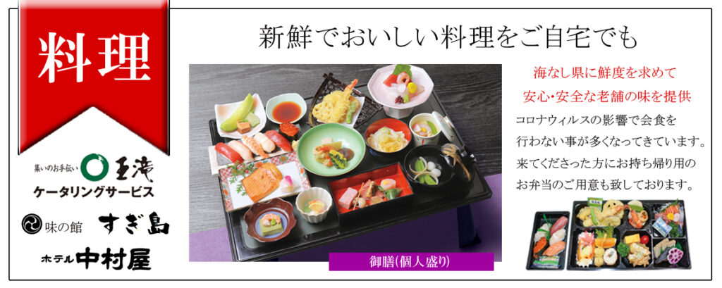 「割烹すぎ島」 「王滝ケータリングサービス」 「ホテル中村屋」